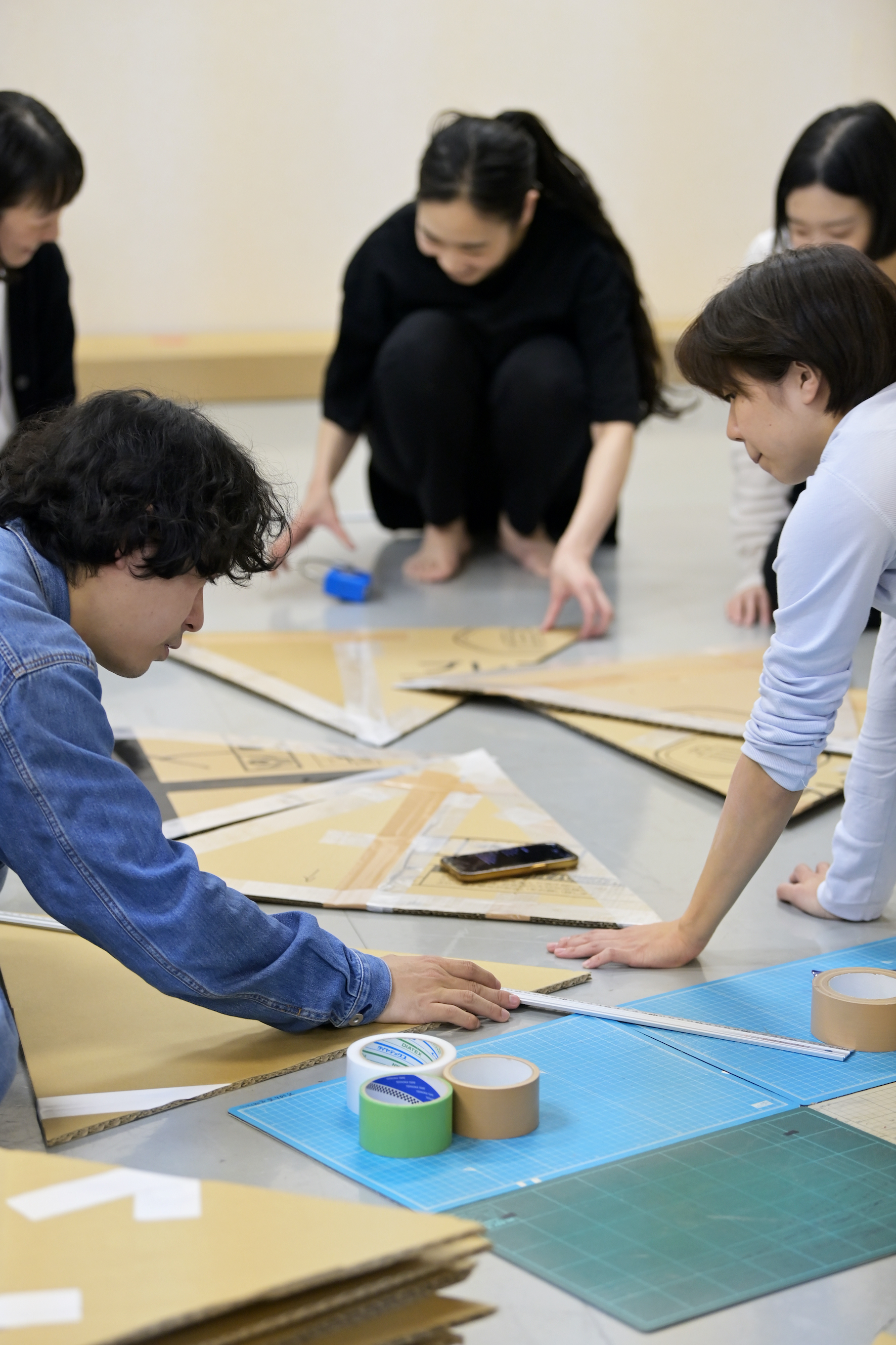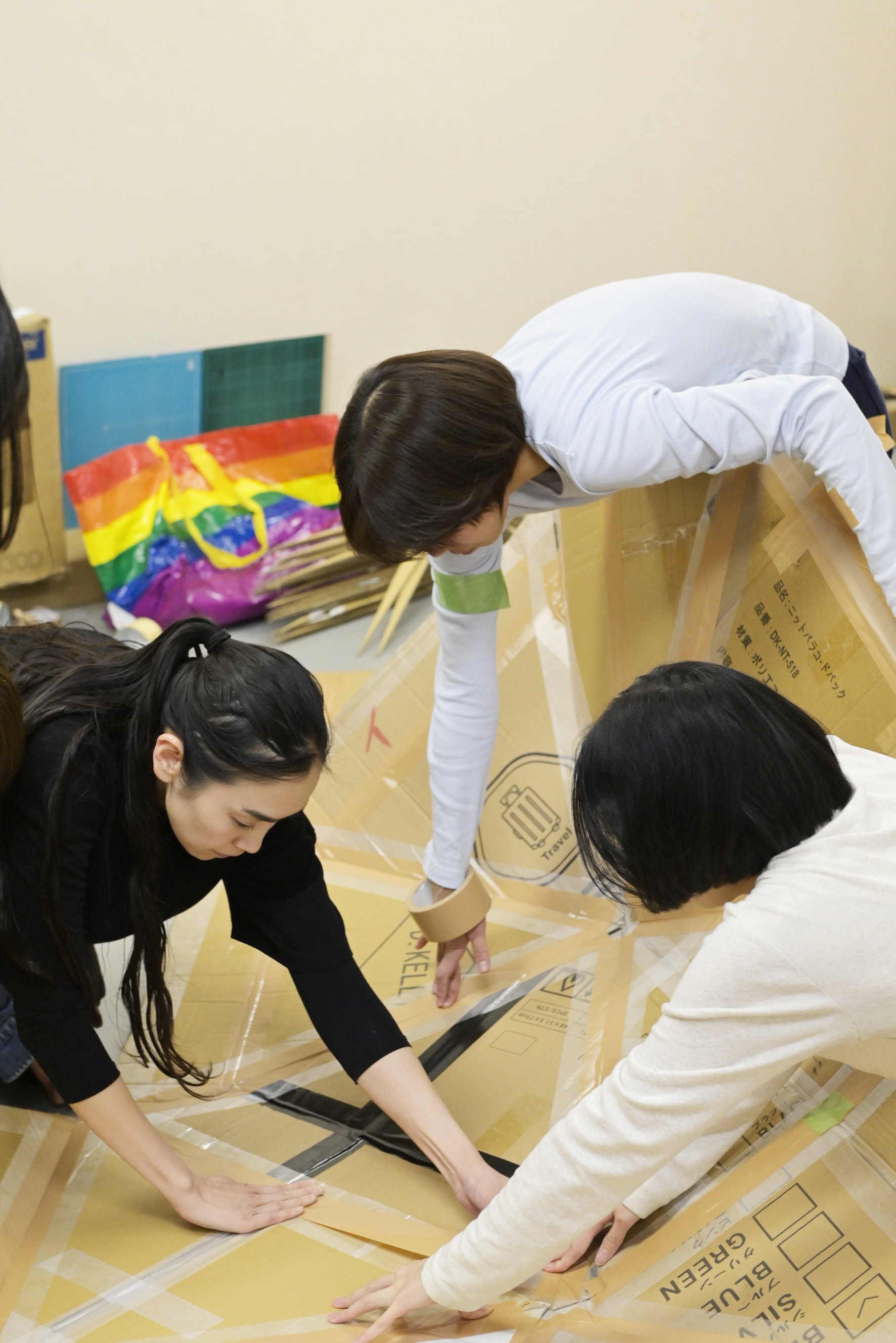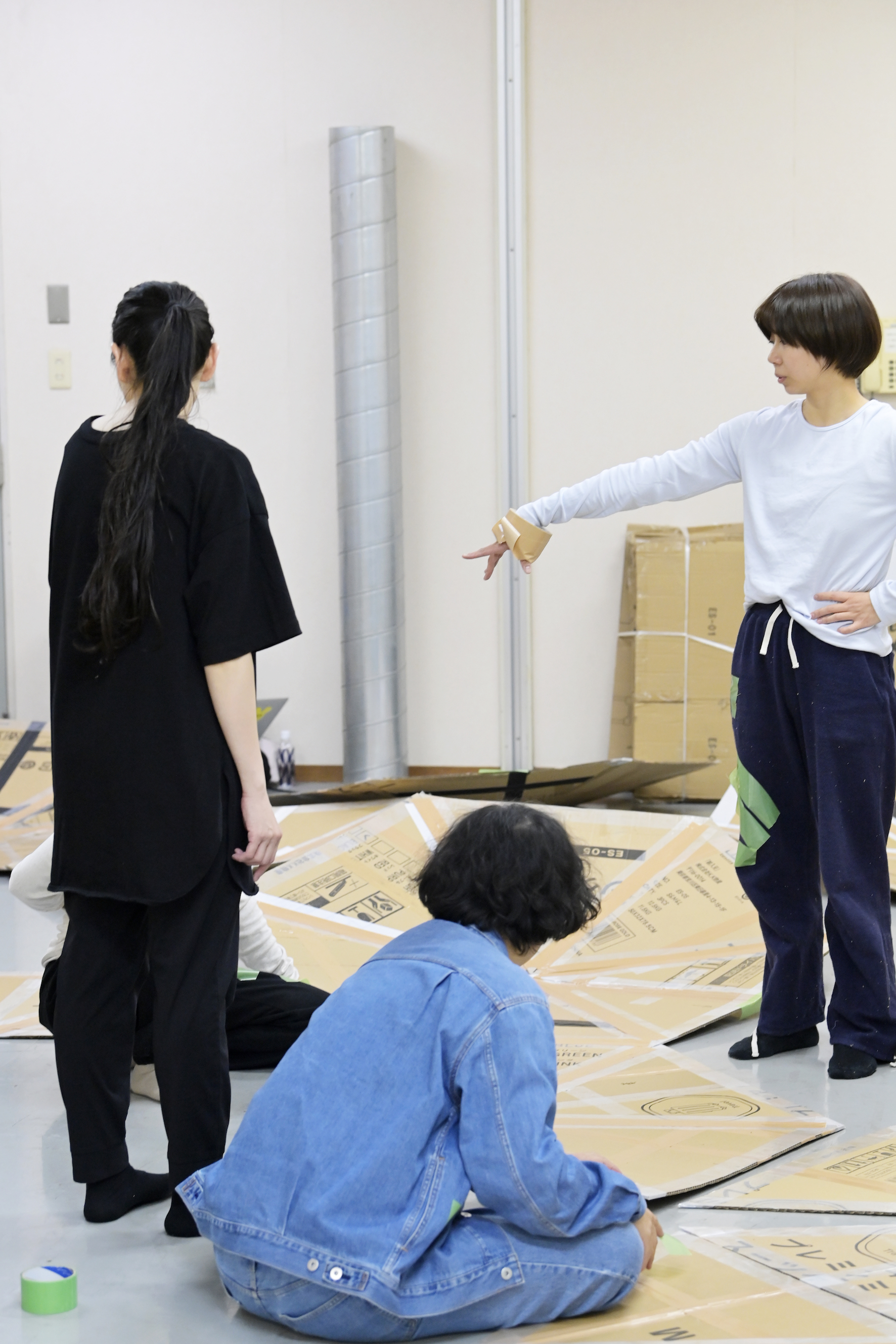 絶対にこのタイミングで話すことじゃないんだけど――この作品は、海外ツアーをやりたいなと思ってるのね。海外に行くときに、その国で段ボールを集めておいてもらったら、舞台美術を持って行かなくても上演できるんじゃないかと思ってたんだよね。どの国でも、この段ボールの切り出し作業から始める、っていう。今そんな話されても、「やりたくない」って話にしかならないと思うけど。